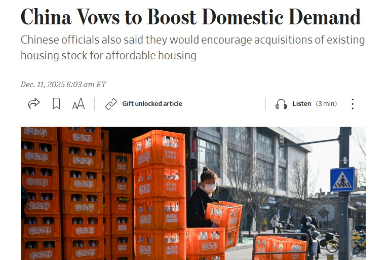 2025年12月10日至11日,中央经济工作会议在北京召开,为2026年中国经济工作指明了方向。不少外媒认为,会议发出的明确信号,不仅表明了中国面对复杂外部发展不确定性的坚定决心,也强调了推动高质量发展的长远战略目标。