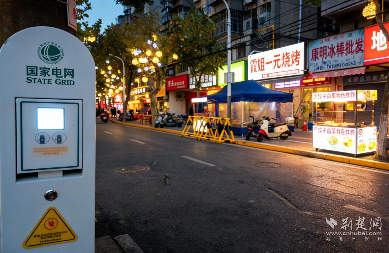 荆楚网(湖北日报网)消息(撰文:吴玉明、周志勇)12月10日,荆州市沙市区五一路夜市的摊位上展示着一根全新的扫码电线杆。 “以前摆摊、拉线既麻烦又不安全,现在只要扫二维码就可以立即用电,电费自动调整。”在五一路经营烧烤摊的摊主刘师傅高兴地说。